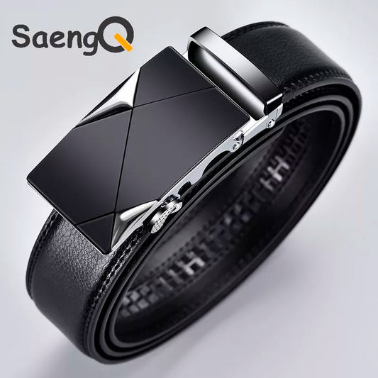 Belts Men width 3.4cm Luxury Brand Designer Fashion Automatic Buckle Genuine Leather Men's Jeans High Quality Waist Male Strap