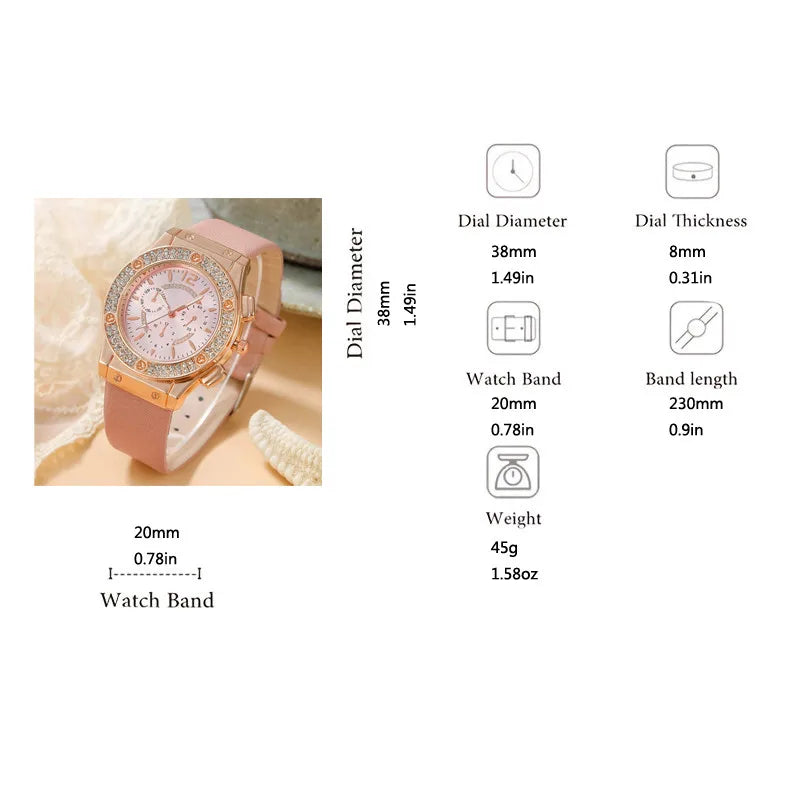 2PCS Set Pink Luxury Rhinestone Watches Women Crystal Quartz Bracelet Watches Wristwatch Ladies Dress Wristwatch Clock Relogio