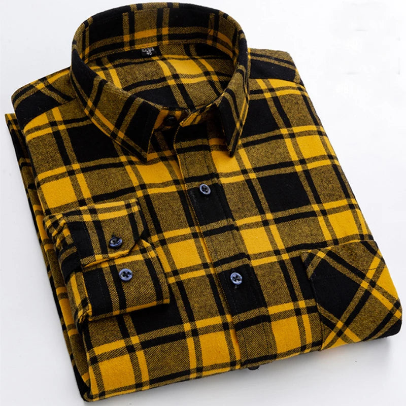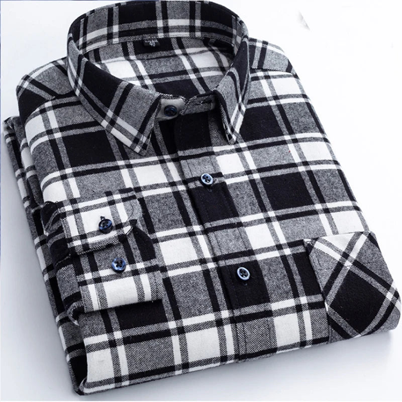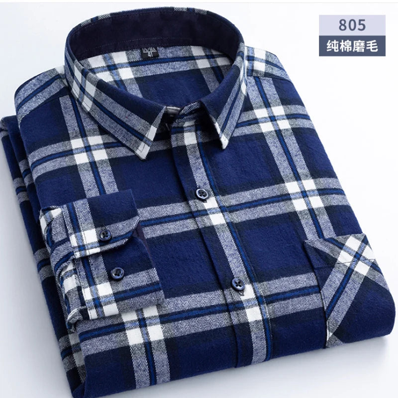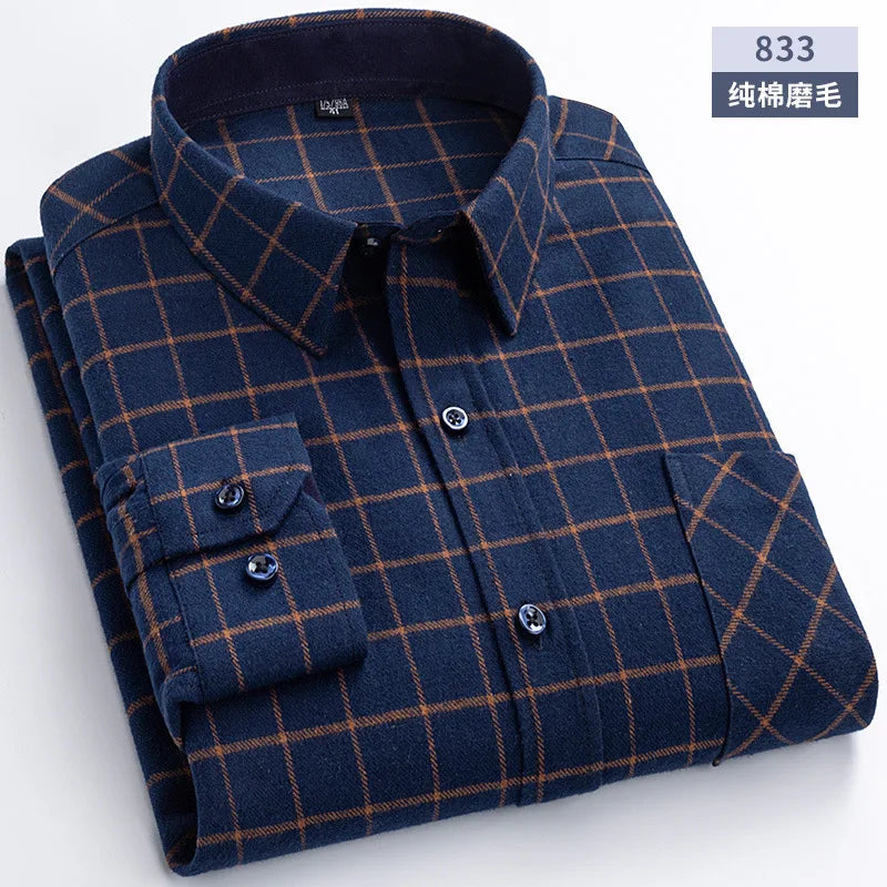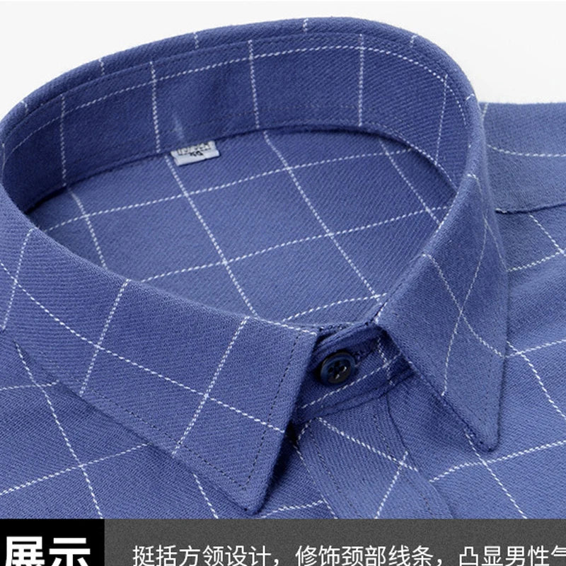 6XL Autumn/Winter Large Men's 100% Cotton Plaid Brushed Long Sleeve Shirt Wrinkle Resistant Business Casual No Iron Thick