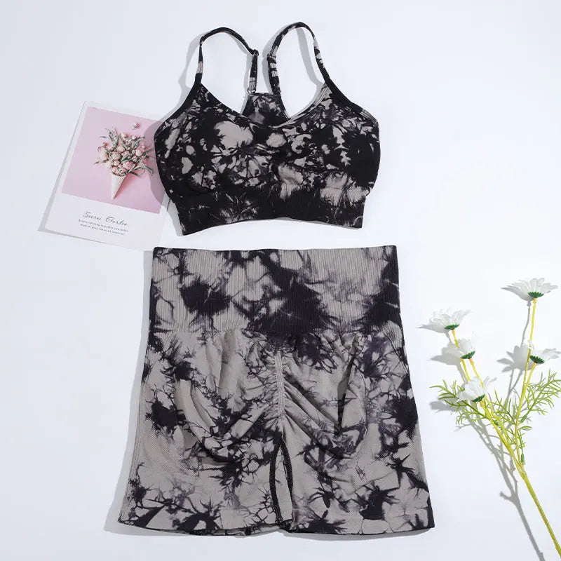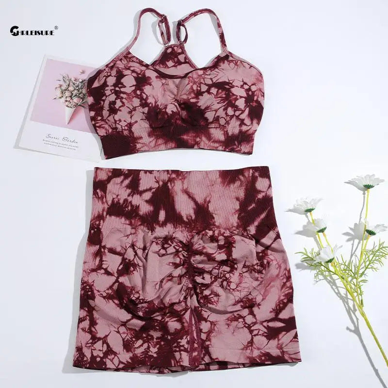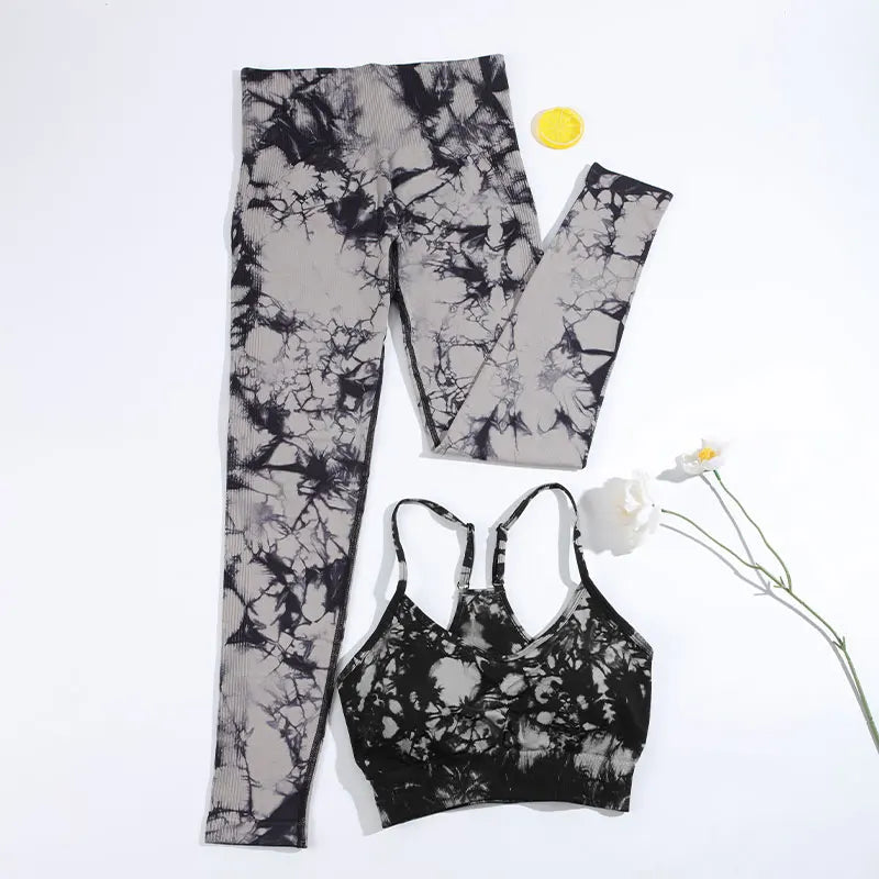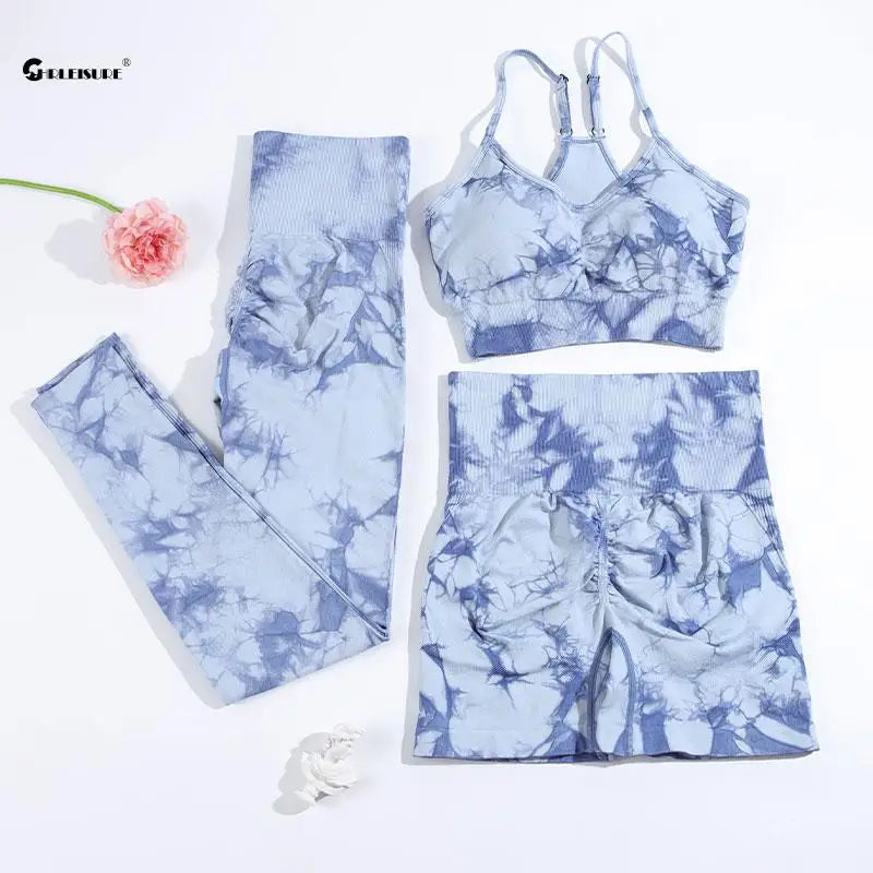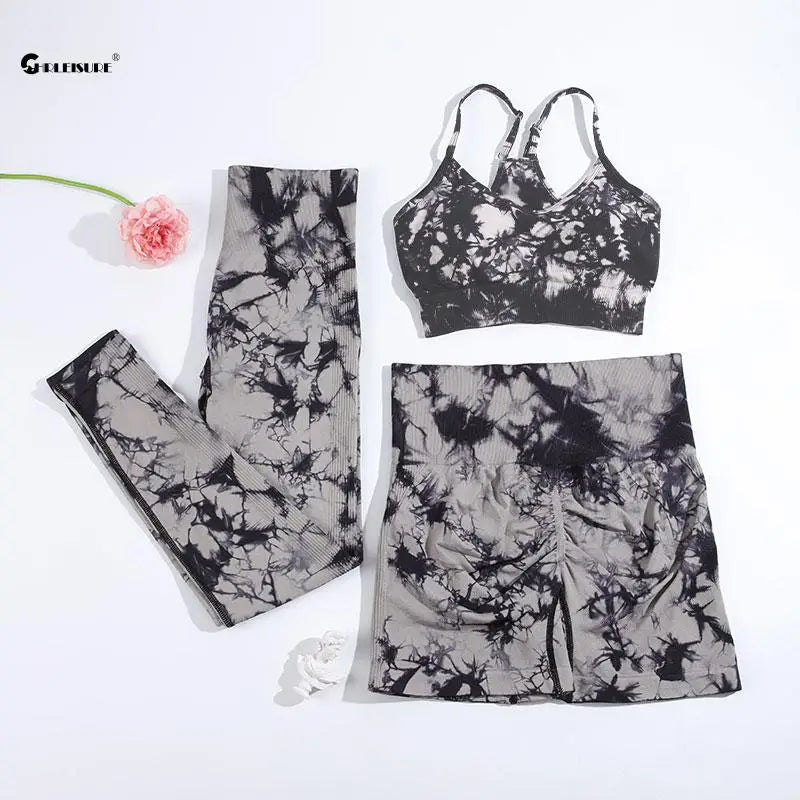CHRLEISURE 2/3PCS Tie Dye Yoga Set Seamless Sports Suit for Women Elastic Gym Athletic Fitness Outfit Outdoor Running Sportswear
