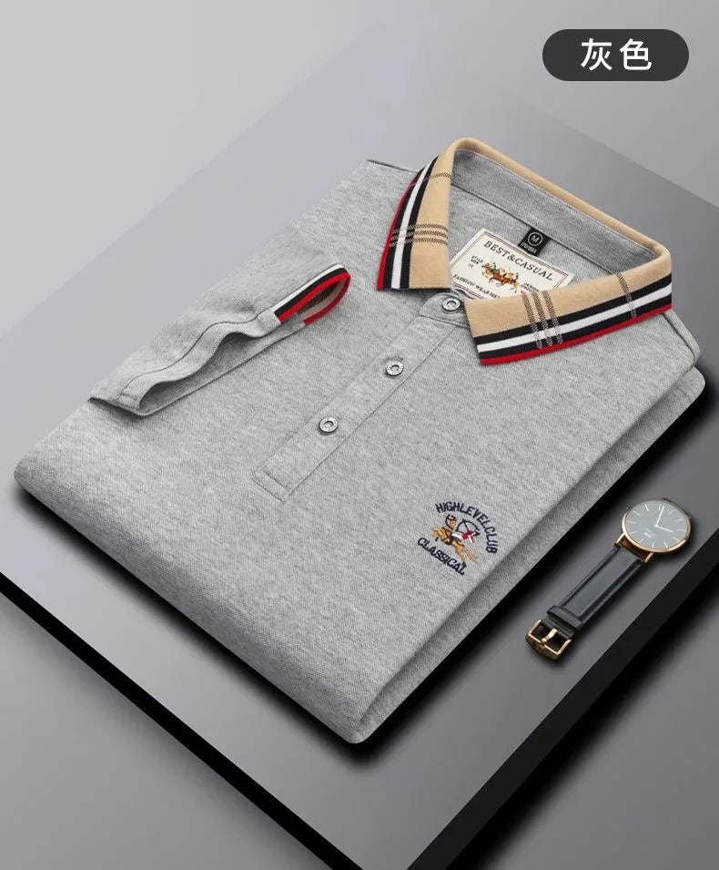 High end mercerized cotton lapel color matching short sleeve polo shirt Men's 2023 popular brand embroidery casual Paul T-shirt