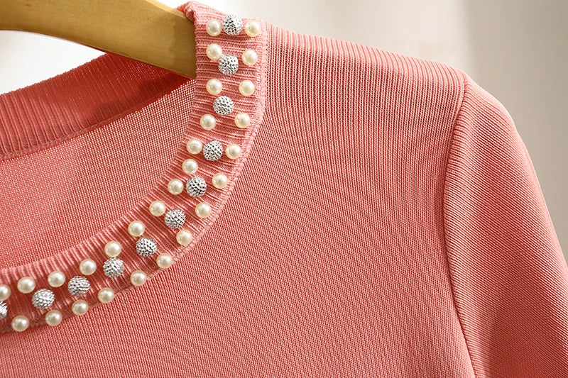 Korea Knitted T-shirt Women Top Solid Tank Y2K Summer New Fashion Female Sleeveless Beading Casual Thin Tops Black White
