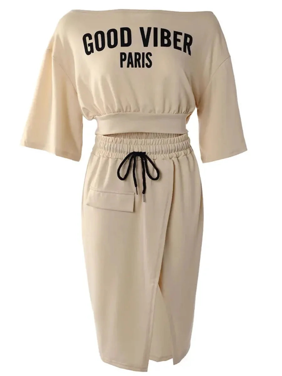 LW Plus Size 2pc Good Viber One Shoulder Letter Print Set