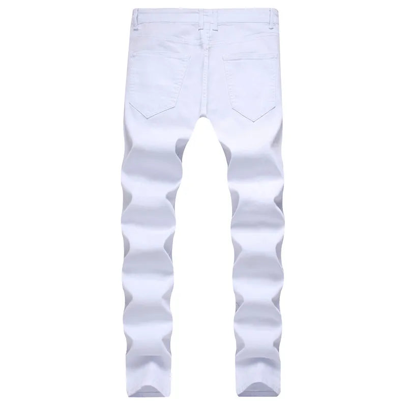Men Fashion Ripped Stretch Skinny Jeans Trousers Male Destroyed Solid Sim Fit Jogging Pencil Denim Pants