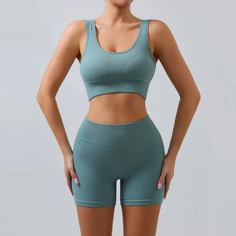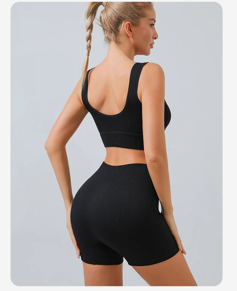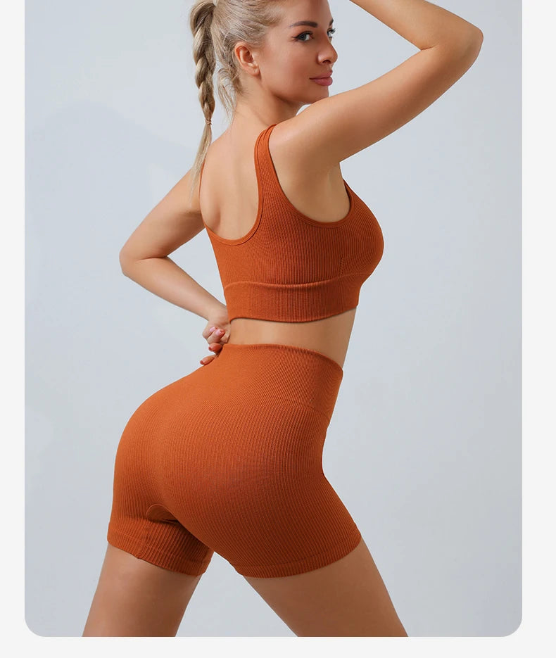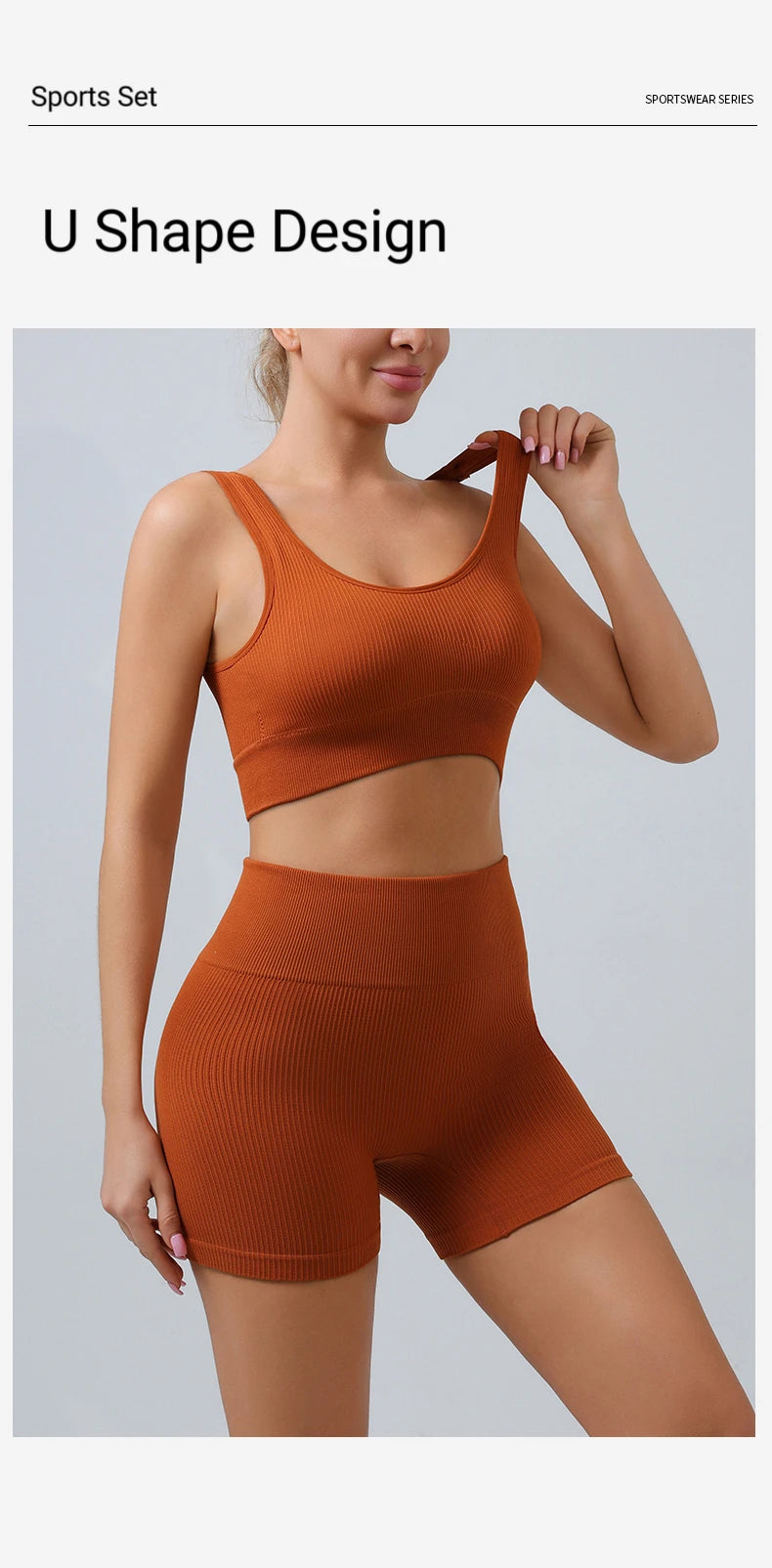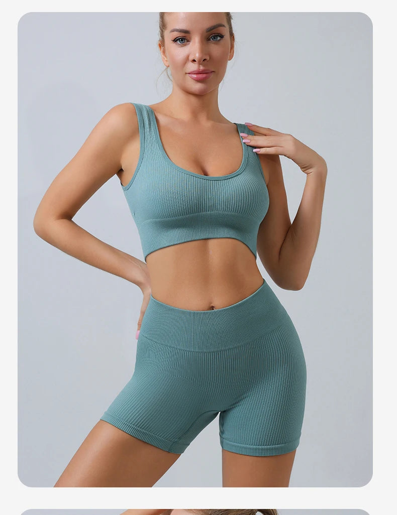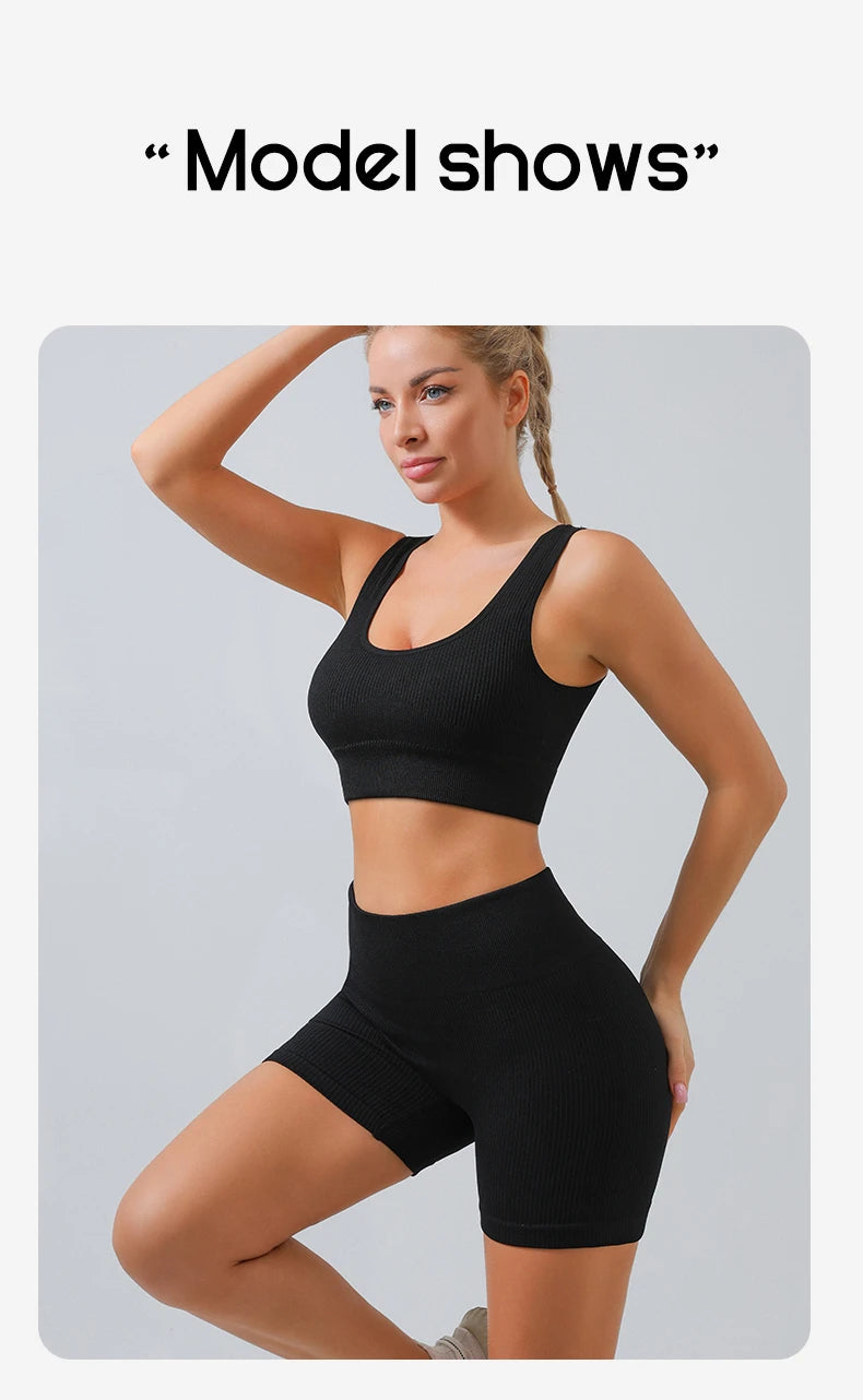 Ribbed Seamless Sport Set Women Crop Top Bra Leggings Shorts Yoga Set Sportsuit Wear Workout Outfit Fitness Gym Clothes