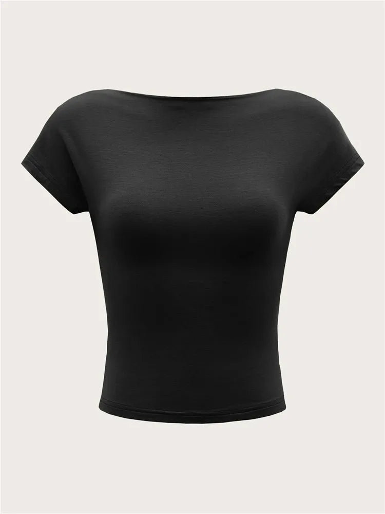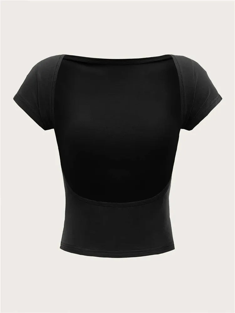 Y2K Women's O-Neck Backless T-Shirt